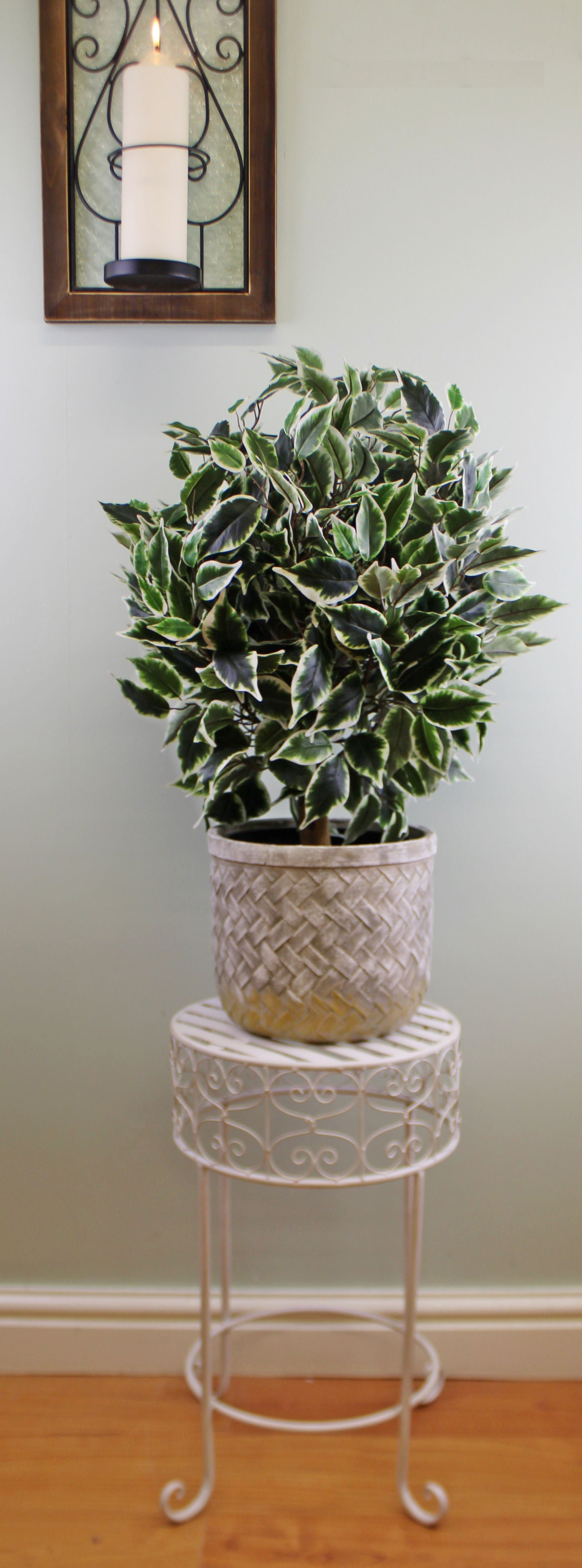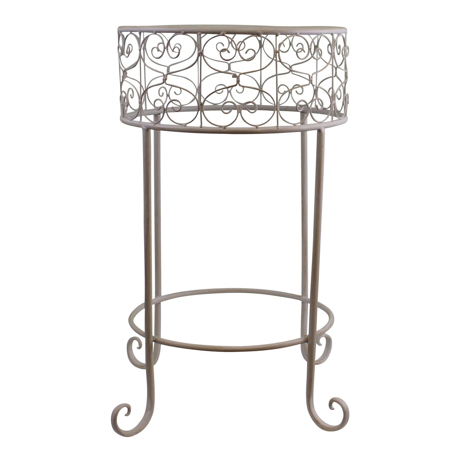 Part of our shabby chic range this plant stand has 4 scrolled legs and a scroll design around the top of the stand. Suitable for indoor or outdoor use. Made of metal with a distressed paint finish. Measurements: 29 x 50.5 x 29cm