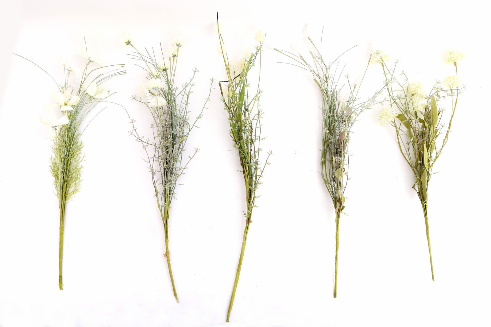 Bunch of five delicate cream faux wildflower stems. Perfect for everlasting arrangements. Can be arranged individually, or in a bunch. Each leaf, stem and flower has been designed to be as realistic as possible. Measurements: D10 x H51 x W10cm