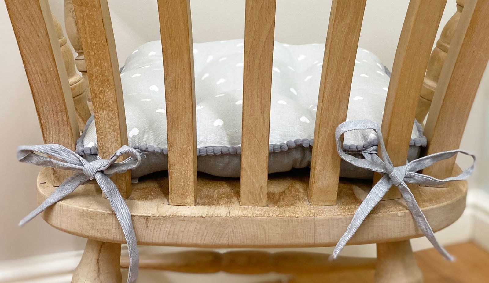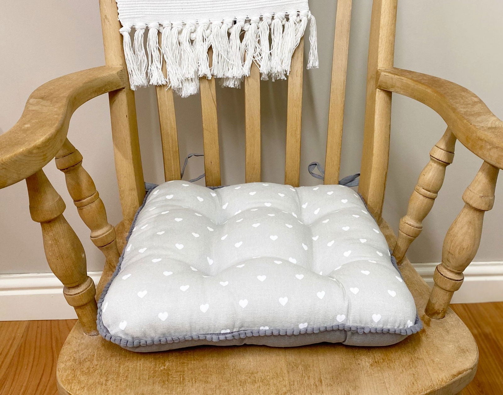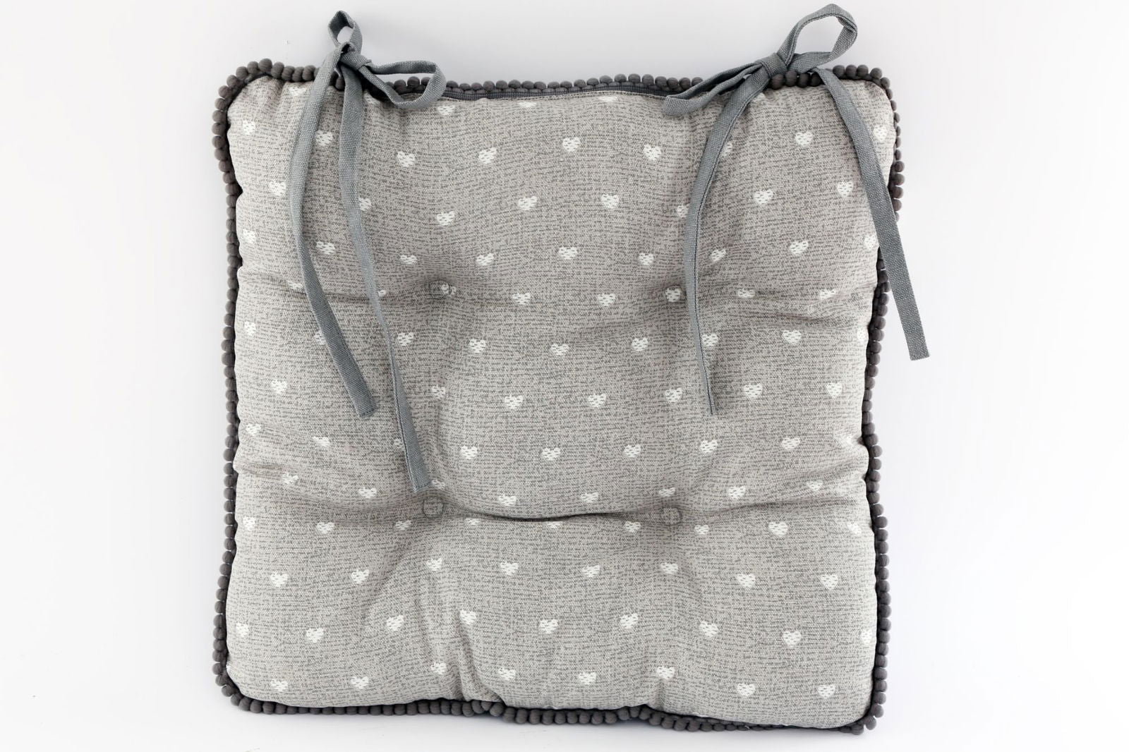 Fabric Seat Pad With Ties In Grey Heart Print Design