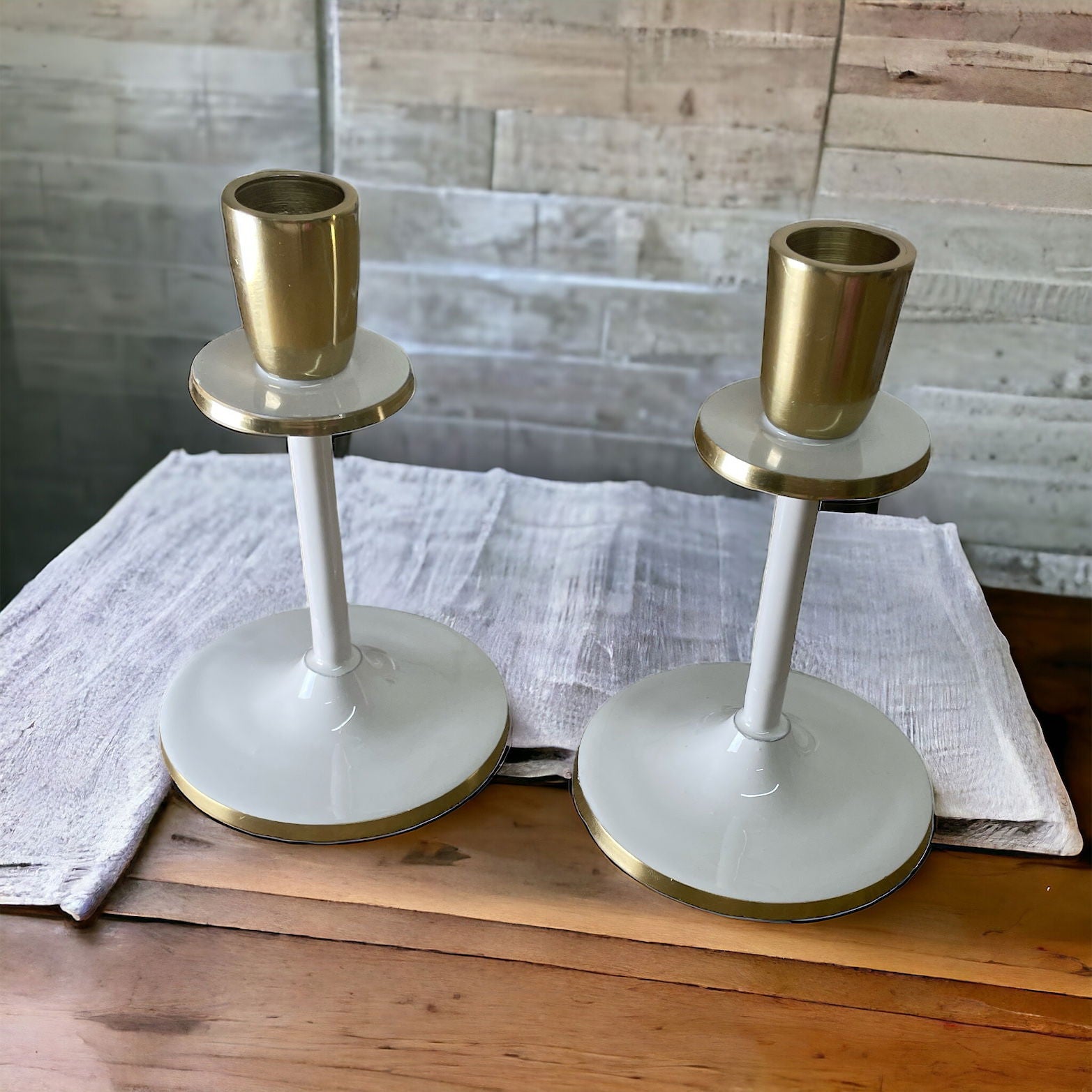 Glossy White Irina Candlestick, Set of 2, 15cm
