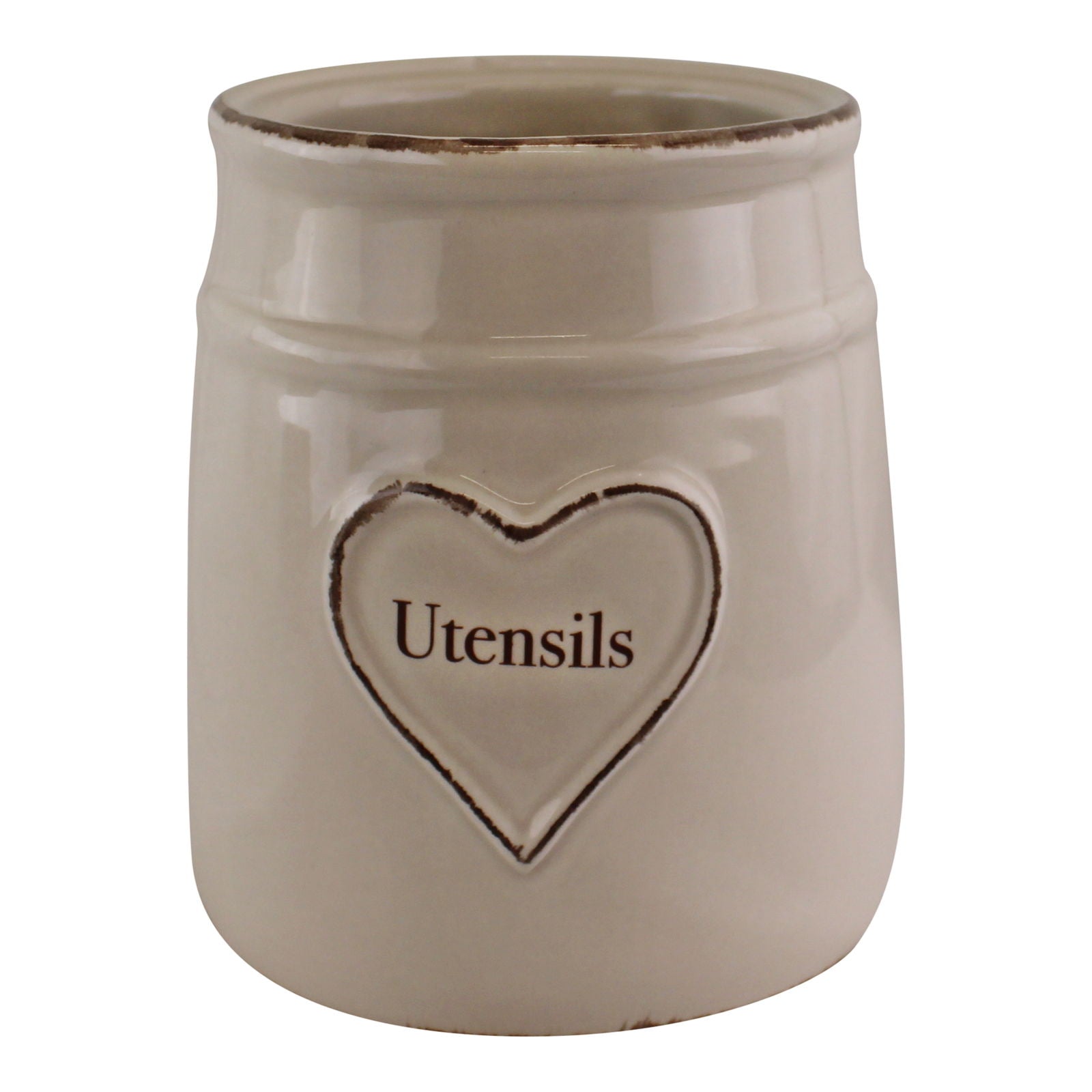 From the Heart range this ceramic utensil holder features the heart design to both the front and rear of the pot and can be used to store your kitchen utensils. Made of 100% dolomite, food safe, hand wash only. Matching items available. Measurements: 11.5 x 13.5 x 11.5cm SKU: KG0657