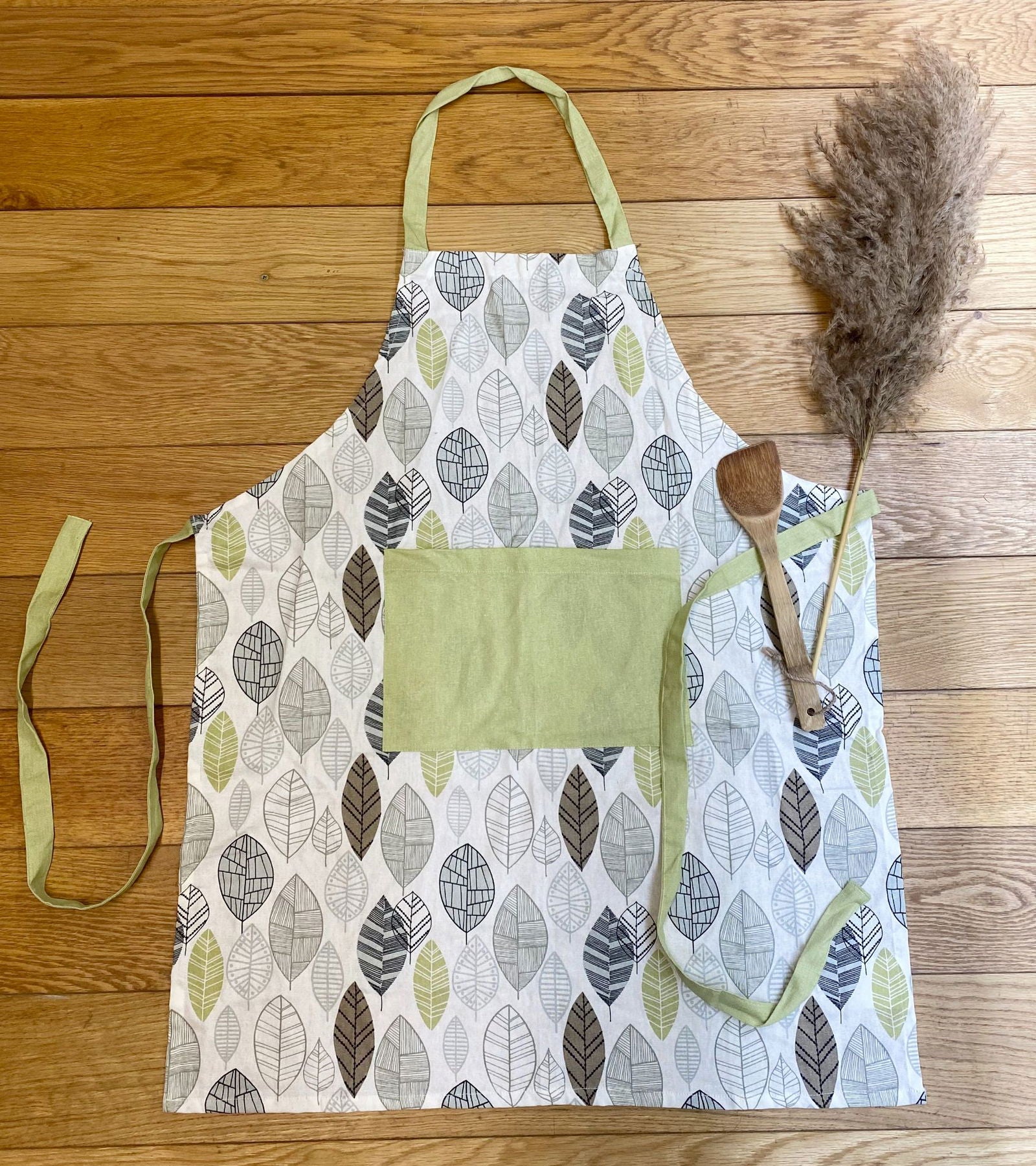 Kitchen Apron With Contemporary Green Leaf Print Design