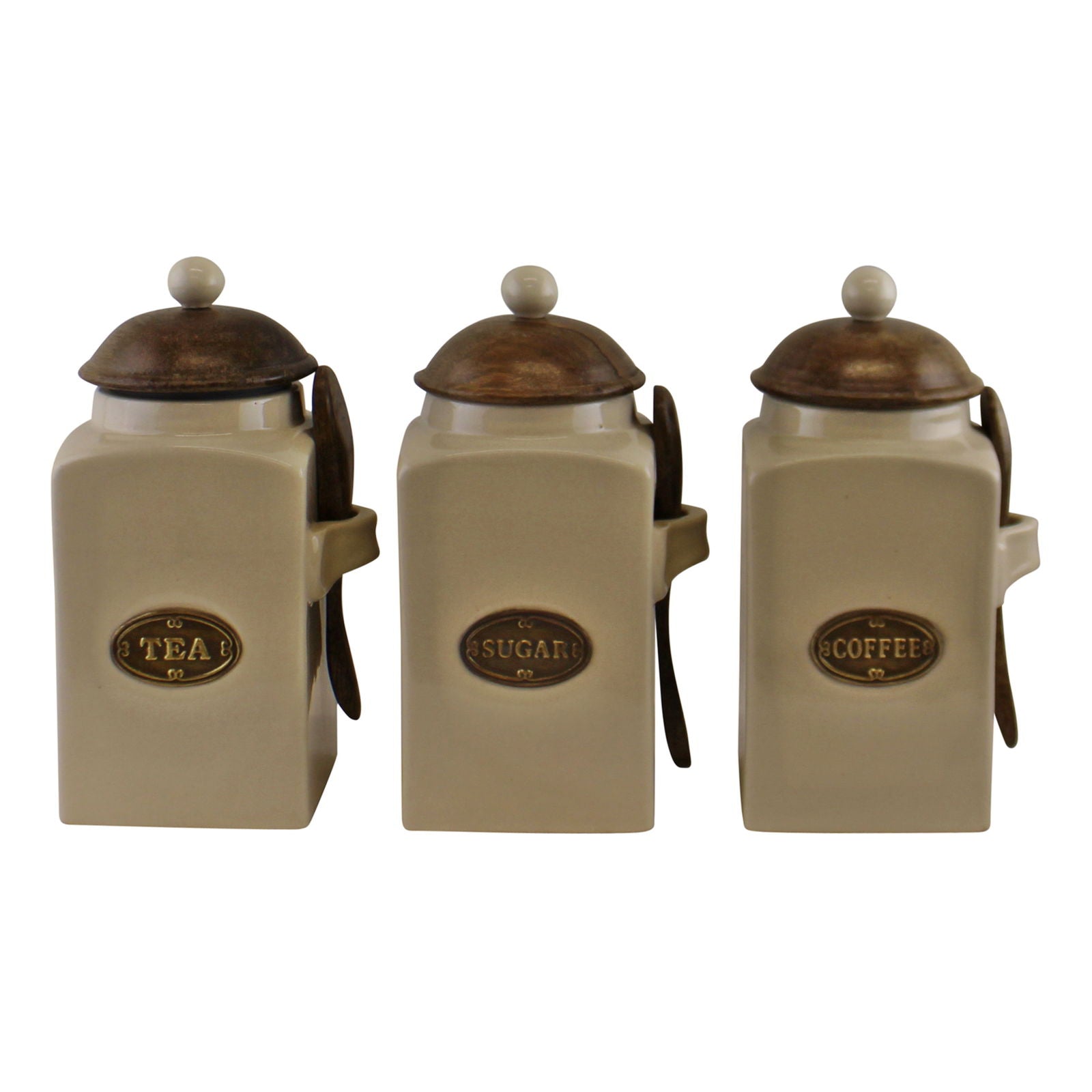 Large Tea, Coffee & Sugar Canisters With Spoons