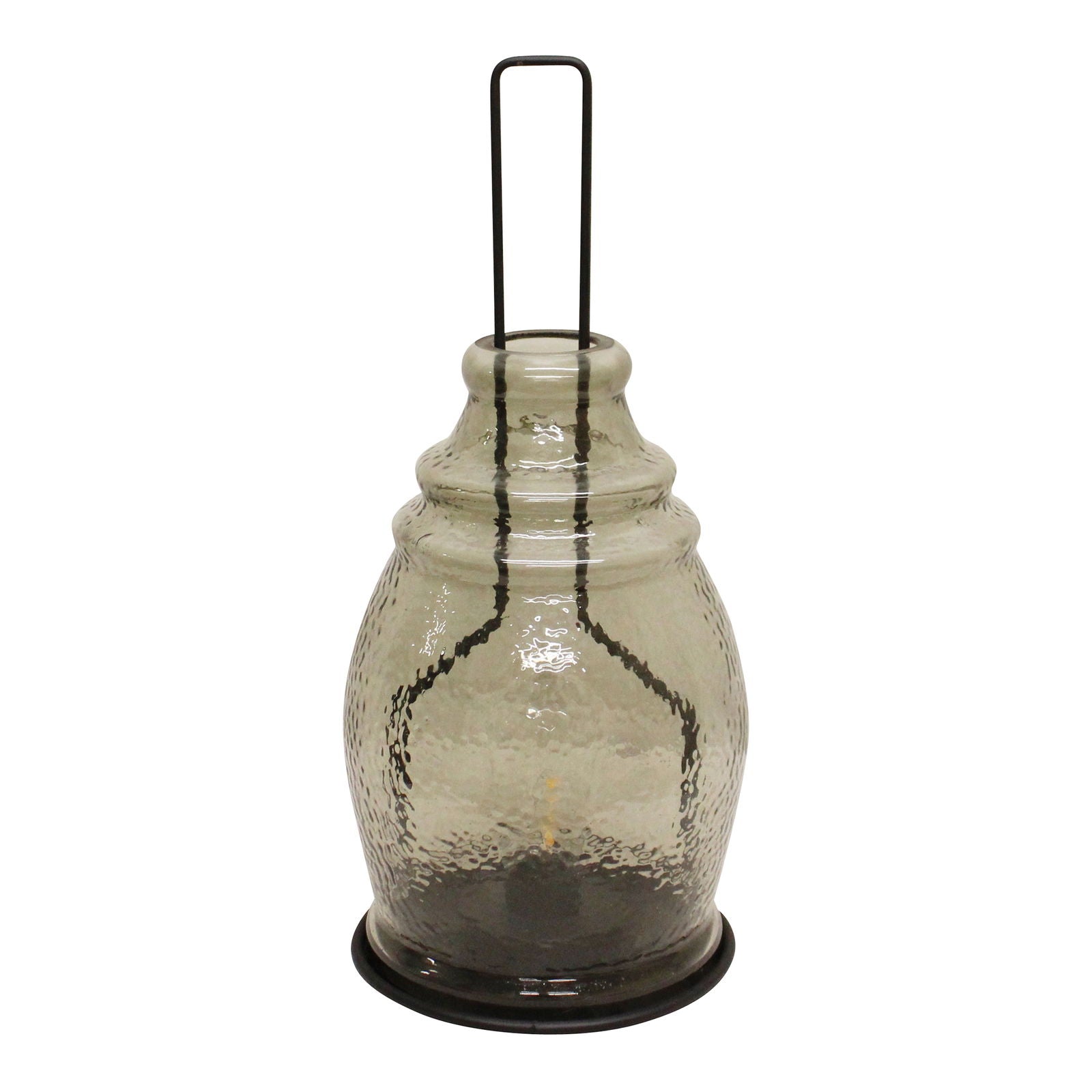 LED Glass Lantern, Grey & Black, 35x15cm.