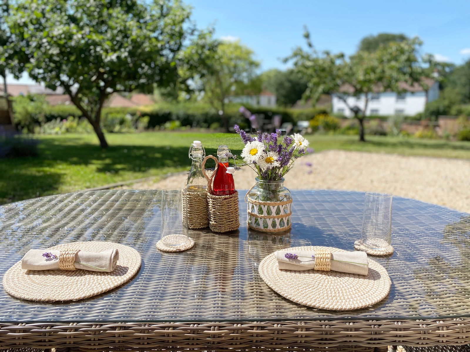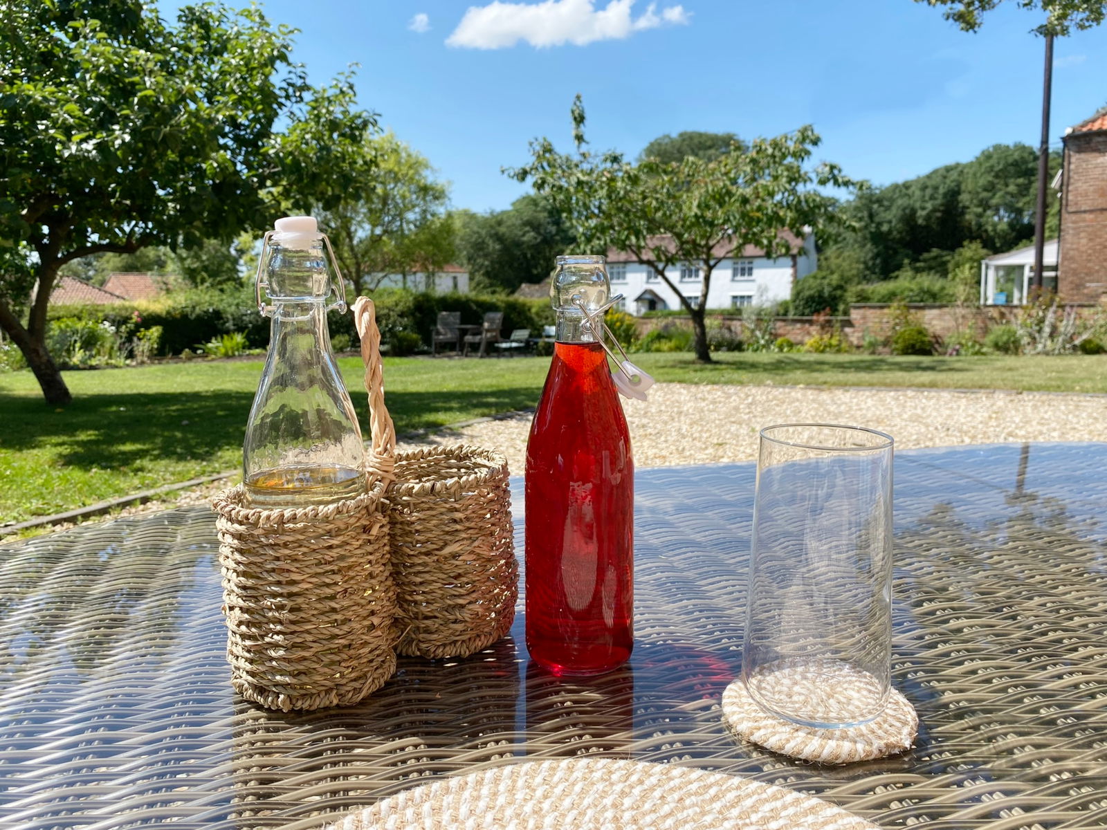 This Seagrass bottle carrier has a rustic charm and neutral colourway that will suit any interior or exterior space. This bottle carrier comes with two kilner clip glass bottles with the capacity to hold 550ml of liquid each. Made with natural seagrass and held together with a wire metal frame. An ideal accessory for a picnic or an outdoor event. Perfect gift idea. Measurements: D10 x H28.5 x W19cm