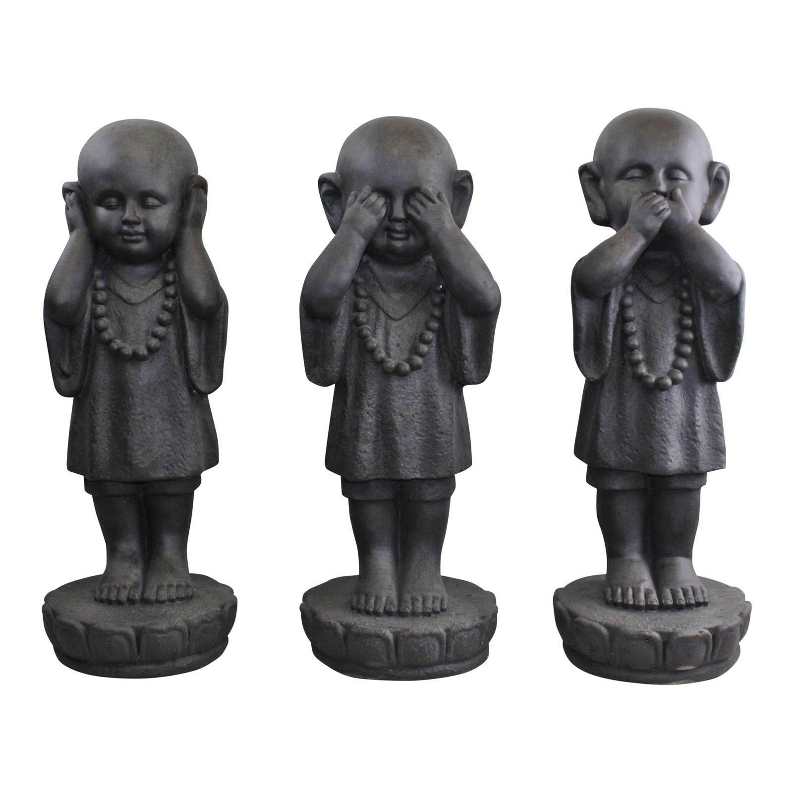 Set Of 3 Stone Effect See No Evil, Hear No Evil, Speak No Evil Monks