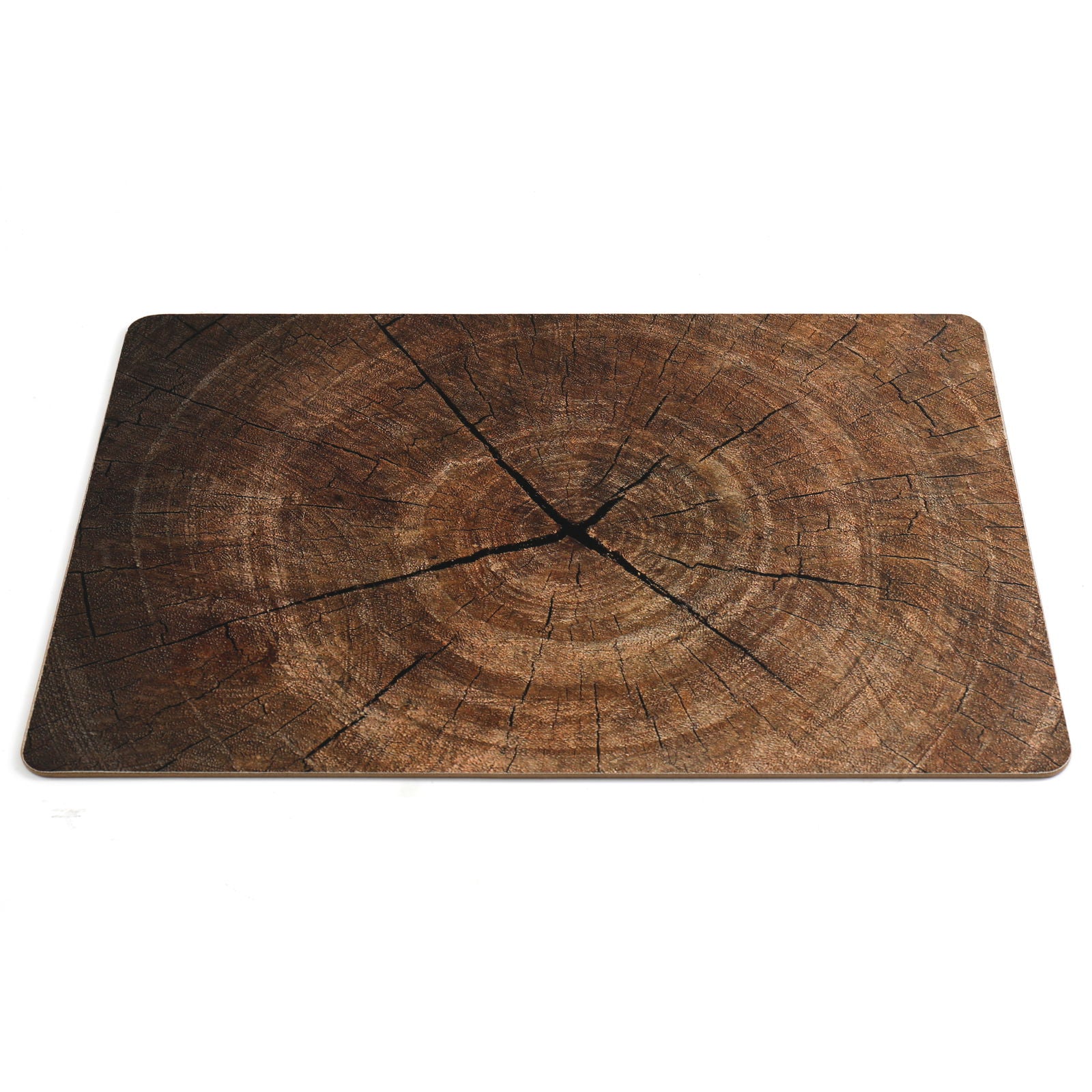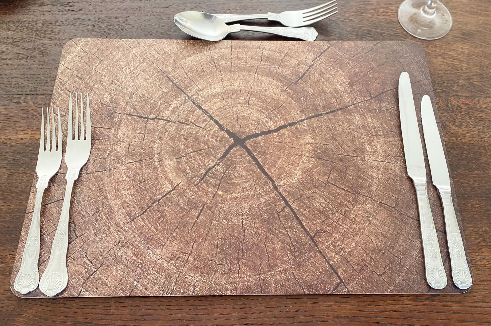 A set of four place mats with a printed wood effect and a cork base. Each mat has dimension of 45cm x 30cm. This functional set with a wipeable surface would look stylish in any home. The set measurements are: D1 x H30 x W45cm