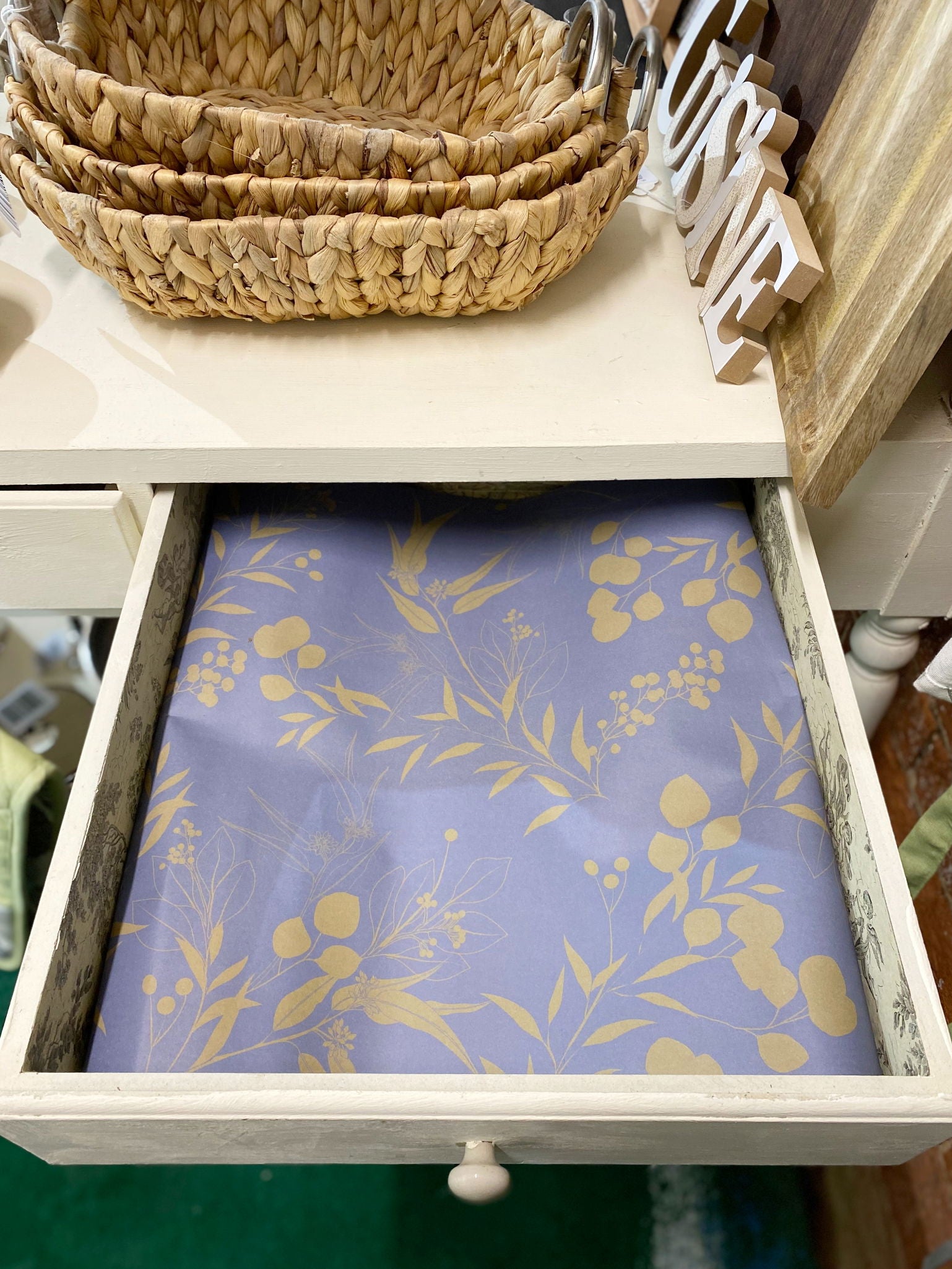 This set of two very attractive scented draw liners are from the Synergy range. There are four sheets per pack of beautiful smokey blue and gold design liners in Wil Fig & Mulberry and Wild Pear and Patchouli are presented in very stylish boxes of smokey blue with gold edging. A very attractive gift package or as a special treat for yourself. Each sheet is 59cm x 42cm Measurements: D7.5 x H13 x W43cm